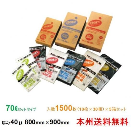 【本州】ケイユ―製 2層ポリ袋 70L セットタイプ 40μ 800mm×900mm 10枚×30冊 5箱セット