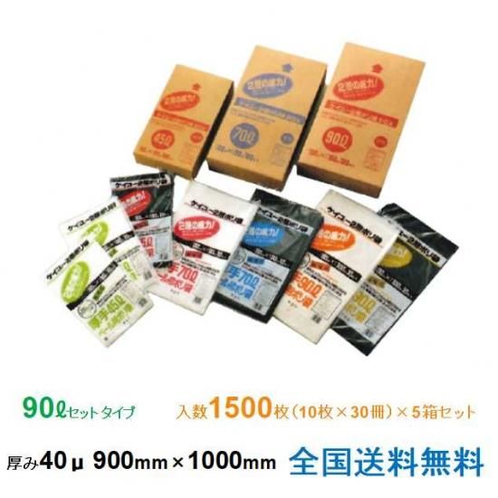 ケイユ―製 2層ポリ袋 90L セットタイプ 40μ 900mm×1000mm 10枚×30冊 5箱セット
