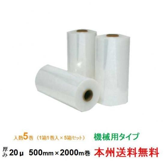 【本州】ヒロユキ製 ストレッチフィルム MA 20μ 500mm×2000m巻 1巻 5箱セット 機械用