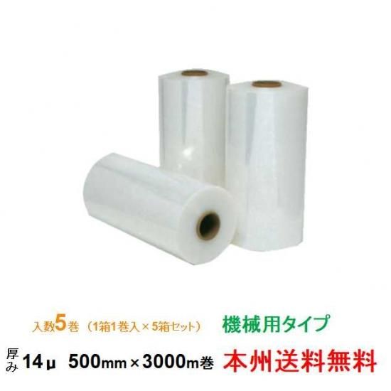【本州】ヒロユキ製 ストレッチフィルム MF 14μ 500mm×3000m巻 1巻 5箱セット 機械用