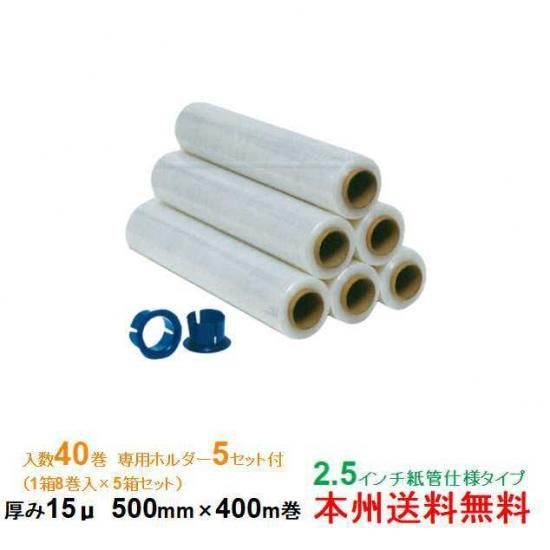 【本州】ヒロユキ製 ストレッチフィルム NOA 15μ 500mm×400m巻 1箱8巻 5箱セット 専用ホルダー付き