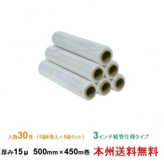 • 【本州】ヒロユキ製 ストレッチフィルム RNO 15μ 500mm×450m巻 1箱6巻 5箱セット