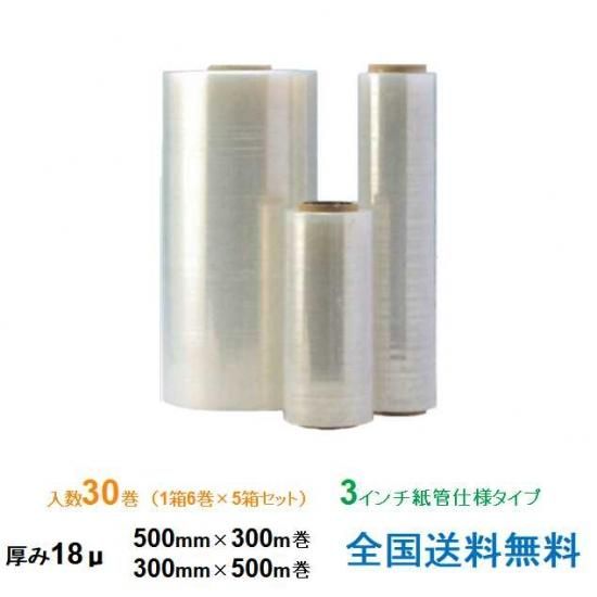 • ケイユ―製 ストレッチフィルム E18 18μ 500mm×300m巻 / 300mm×500m巻 1箱6巻入り 5箱セット