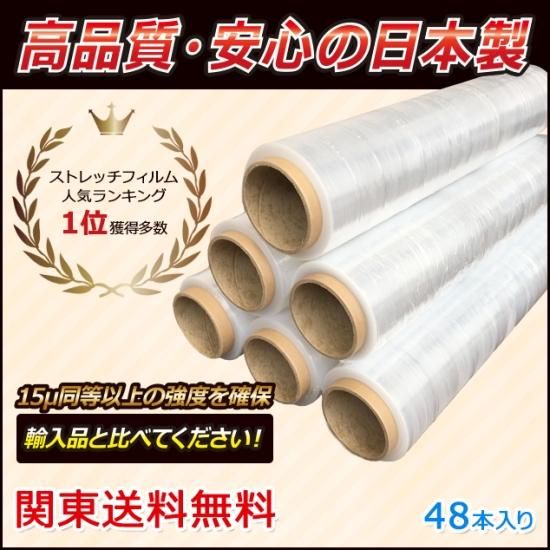 ストレッチフィルム SY 500mm×300m巻 6巻(6本)入 8箱セット 合計48巻 15μ(15ミクロン)相当品 関東無料