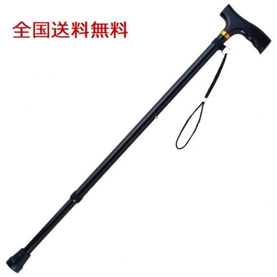 ステッキ先端部には滑り止め、ハンドルにはリストバンド付き。ドイツ安全規格の伸縮ステッキです。