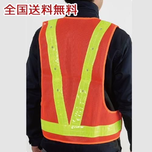 • LED付き 蛍光ベスト オレンジ 安全ベルト 夜間作業 交通パトロール 防犯パトロール