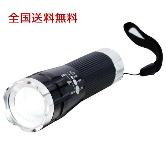 ツイストズーム付き3W LEDトーチ ハンディライト 防災 アウトドア 懐中電灯 シルバー&ブラック