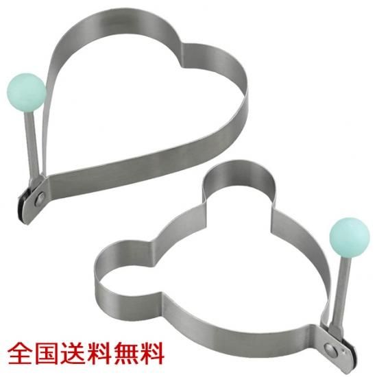 • 持ち手付で熱くないST製エッグクッカー2PC 目玉焼き型 金型 エッグリング 目玉焼きリング