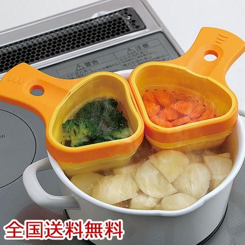 1つの鍋でゆで時間の異なる食材が混ざることなくいっしょに茹でることができます