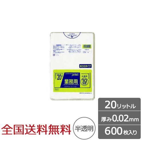 業務用ポリ袋 20リットル 半透明 0.02mm 600枚 ゴミ袋 ジャパックス製