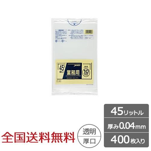 業務用ポリ袋 45リットル 透明 0.04mm 400枚 厚口 ゴミ袋 ジャパックス製