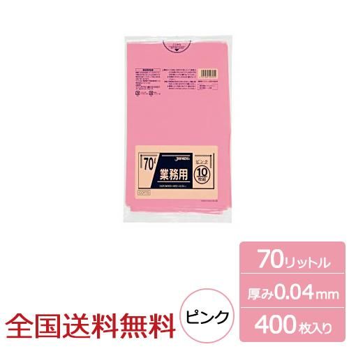 業務用ポリ袋 70リットル ピンク 0.04mm 400枚 ゴミ袋 ジャパックス製