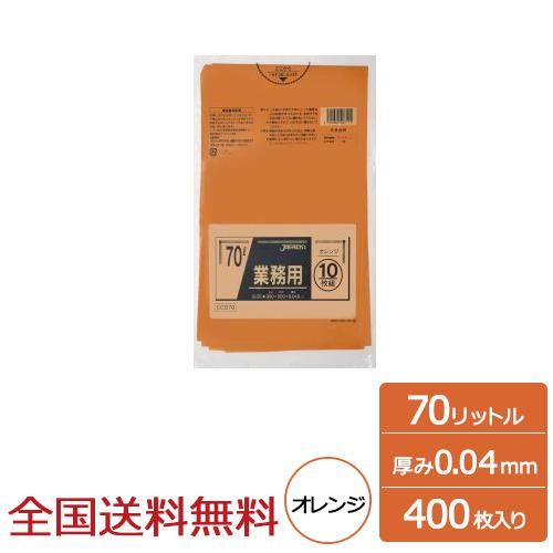業務用ポリ袋 70リットル オレンジ 0.04mm 400枚 ゴミ袋 ジャパックス製