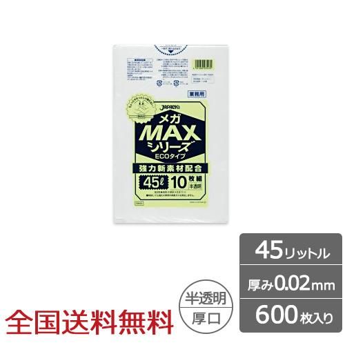 業務用ポリ袋 MAX 45リットル 半透明 0.02mm 600枚 ゴミ袋 ジャパックス製