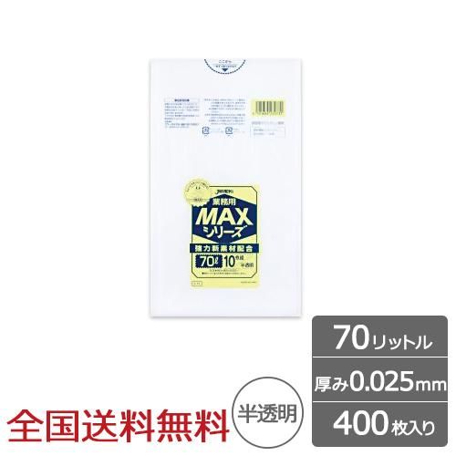 業務用ポリ袋 MAX 70リットル 半透明 0.025mm 400枚 ゴミ袋 ジャパックス製