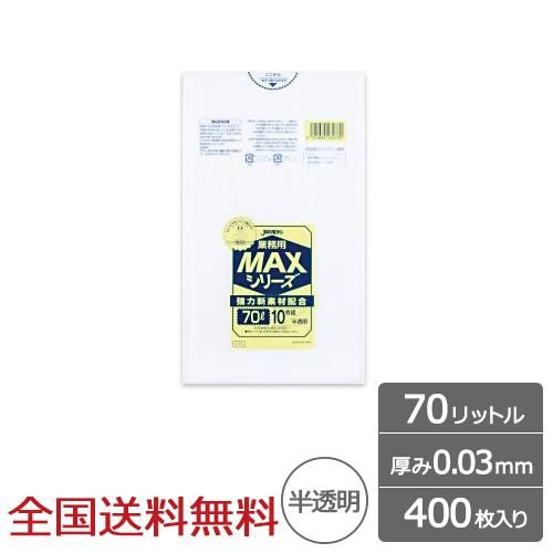 業務用ポリ袋 MAX 70リットル 半透明 0.03mm 400枚 ゴミ袋 ジャパックス製