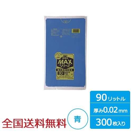 業務用ポリ袋 MAX 90リットル 青 0.02mm 300枚 ゴミ袋 ジャパックス製