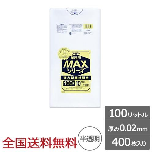 業務用ポリ袋 MAX 100リットル 半透明 0.02mm 400枚 ゴミ袋 ジャパックス製