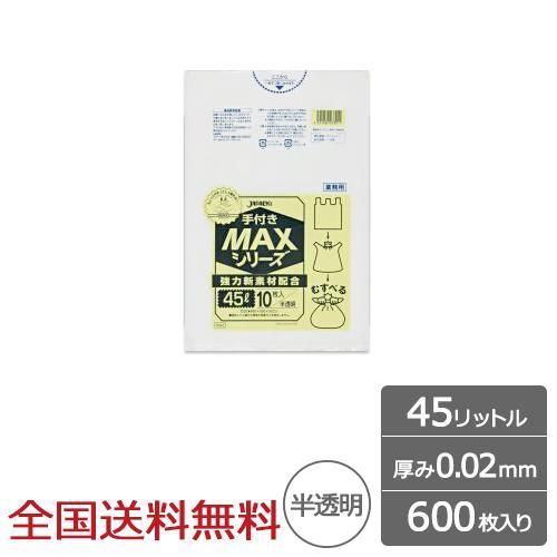 業務用ポリ袋 MAX 45リットル 半透明 0.02mm 600枚 手付きタイプ ゴミ袋 ジャパックス製