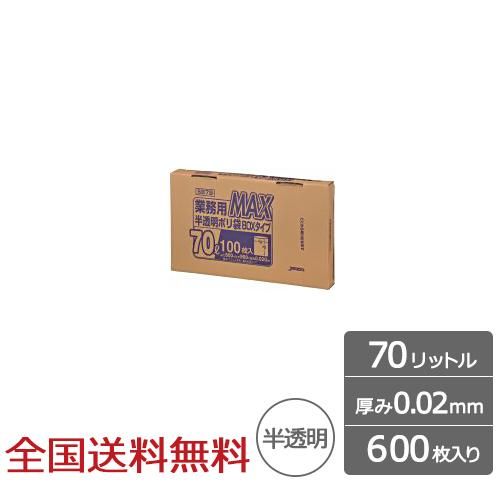 業務用ポリ袋 MAX BOXタイプ 70リットル 半透明 0.02mm 600枚 ゴミ袋 ジャパックス製