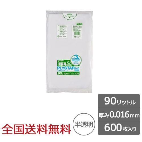 プライスターエコ 90リットル 半透明 0.016mm 600枚 ゴミ袋 ジャパックス製