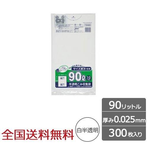 容量表示入ポリ袋 90リットル 白半透明 レギュラータイプ 0.025mm 300枚 ゴミ袋 ジャパックス製