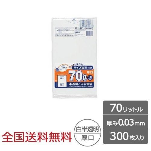 容量表示入ポリ袋 70リットル 白半透明 厚口タイプ 0.03mm 300枚 ゴミ袋 ジャパックス製
