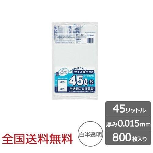 容量表示入ポリ袋 45リットル 白半透明 ローコストタイプ 0.015mm 800枚 ゴミ袋 ジャパックス製
