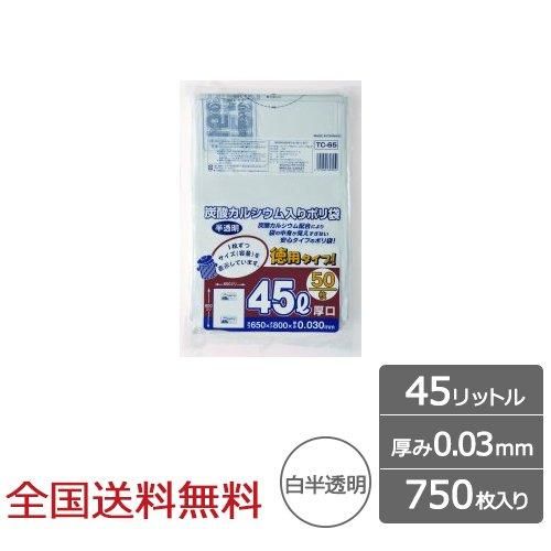 容量表示入ポリ袋 45リットル 白半透明 徳用タイプ 0.03mm 750枚 ゴミ袋 ジャパックス製