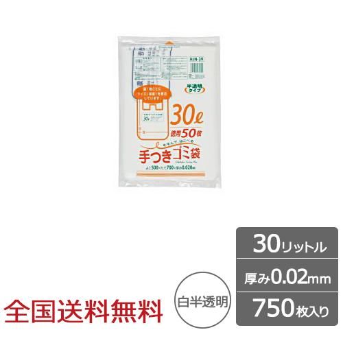 • 容量表示入ポリ袋 30リットル 手付きタイプ 0.02mm 750枚 お徳用 ゴミ袋 ジャパックス製