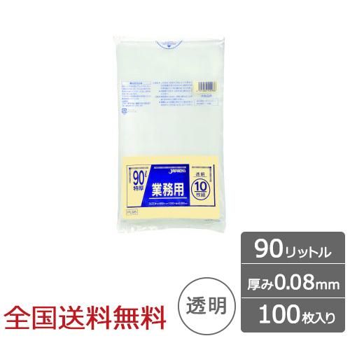 業務用 重量物対応ポリ袋 90リットル 0.08mm 透明 100枚 特厚 厚口 二重シール ジャパックス製