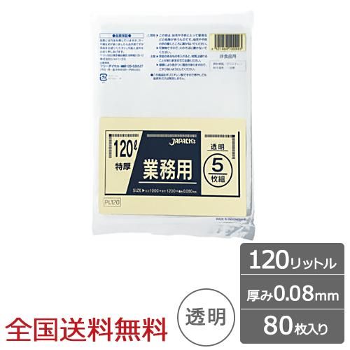 業務用 重量物対応ポリ袋 120リットル 0.08mm 透明 80枚 特厚 厚口 二重シール ジャパックス製