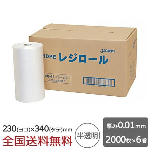 ロール巻ポリ袋 0.01mm 半透明 230×340mm 2000枚×6巻 ゴミ袋 ジャパックス製 レジロール ミシン目入り