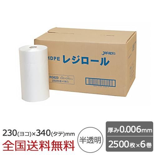 ロール巻ポリ袋 0.006mm 半透明 230×340mm 2500枚×6巻 ゴミ袋 ジャパックス製 レジロール ミシン目入り 極薄