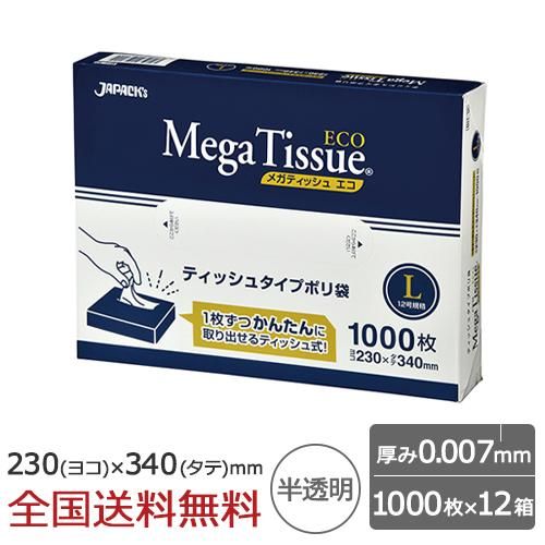 BOXポリ袋 0.007mm 半透明 1000枚×12箱 230×340mm ゴミ袋 ジャパックス製 ティッシュタイプ メカティッシュ