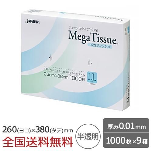 BOXポリ袋 0.01mm 半透明 1000枚×9箱 260×380mm ゴミ袋 ジャパックス製 ティッシュタイプ メカティッシュ