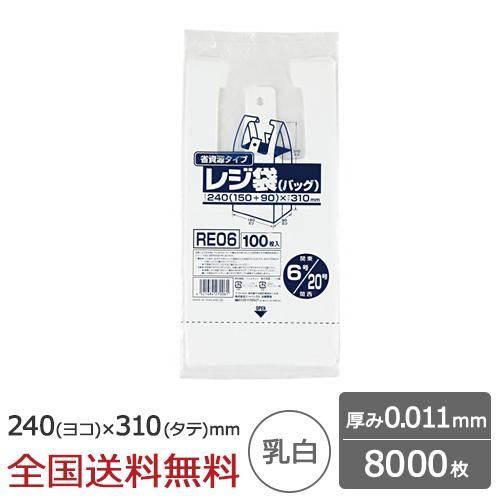 • レジ袋 省資源 ベロ付きブロックタイプ 関東6号 関西20号 0.011mm 乳白 8000枚 ゴミ袋 ジャパックス製