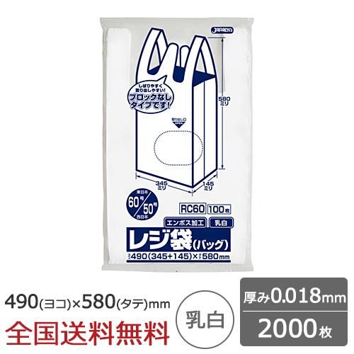 • レジ袋 省資源 ノンブロックベロ付きタイプ 関東60号 関西50号 0.018mm 乳白 2000枚 ゴミ袋 ジャパックス製