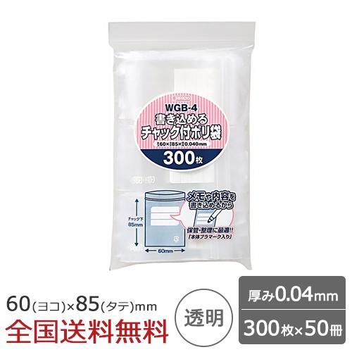 書き込める チャック付ポリ袋 300枚×50冊 0.04mm 透明