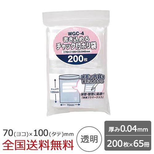 書き込める チャック付ポリ袋 200枚×65冊 0.04mm 透明