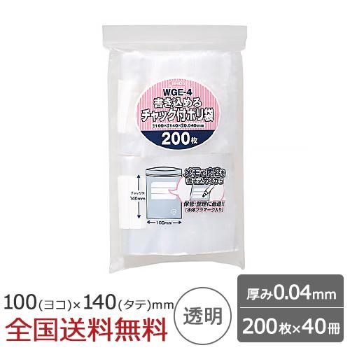 書き込める チャック付ポリ袋 200枚×40冊 0.04mm 透明