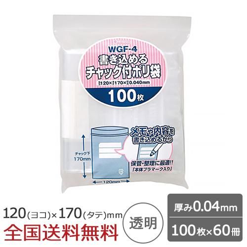 書き込める チャック付ポリ袋 100枚×60冊 0.04mm 透明