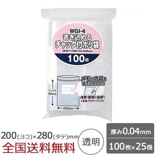 書き込める チャック付ポリ袋 100枚×25冊 0.04mm 透明