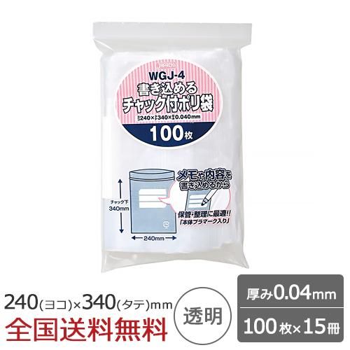 書き込める チャック付ポリ袋 100枚×15冊 0.04mm 透明