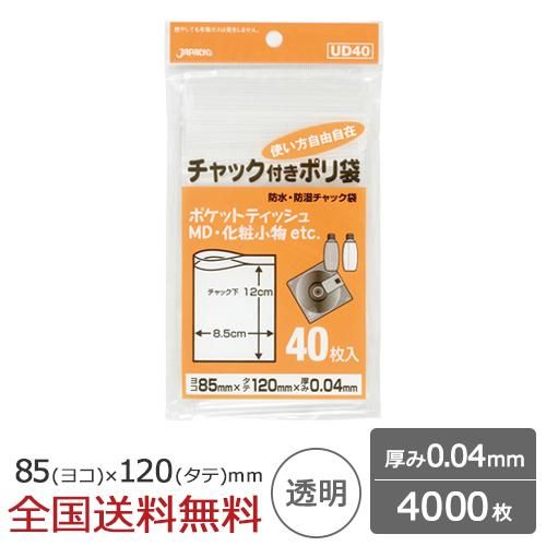 • 家庭用チャック付ポリ袋 4000枚 0.04mm 透明 ジャパックス製