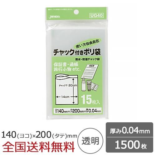 • 家庭用チャック付ポリ袋 1500枚 0.04mm 透明 ジャパックス製