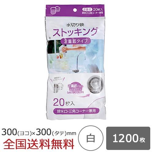 水切り ストッキングタイプ 2重底 排水口/三角コーナー兼用 1200枚 白 水切れ 水切れ袋 ジャパックス製