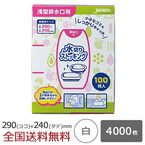 水切り ストッキングタイプ 浅型排水口用 BOXタイプ 4000枚 白 水切れ 水切れ袋 ジャパックス製