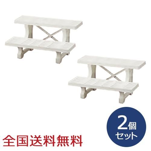 • フラワ−スタンド 2段600 ホワイト ガーデニング フラワーラック お得な2個セット