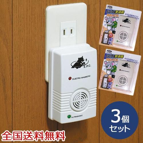 • ネズミ撃退器 シングル ネズミ除去器 ネズミ駆除 ネズミ退治 超音波駆除 お得な3個セット